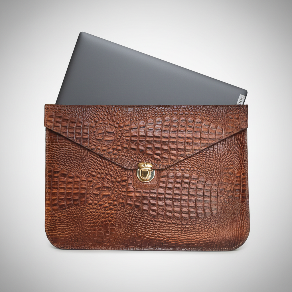 بدنه این کاور از چرم طبیعی گاوی مرغوب با طرح بچه کروکودیل به رنگ عسلی ساخته شده که علاوه بر زیبایی چشم‌نواز، دوام و مقاومت بالایی در برابر سایش، خط‌وخش و ضربه دارد. قفل فلزی مستحکم به‌ کار رفته در طراحی کاور، امنیت لپ‌تاپ شما را تضمین کرده و حس کیفیت و استحکام را به‌ خوبی منتقل می‌کند.