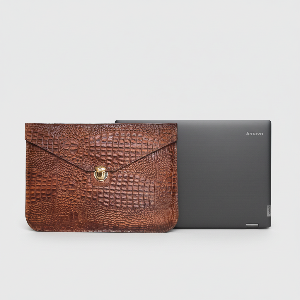 بدنه این کاور از چرم طبیعی گاوی مرغوب با طرح بچه کروکودیل به رنگ عسلی ساخته شده که علاوه بر زیبایی چشم‌نواز، دوام و مقاومت بالایی در برابر سایش، خط‌وخش و ضربه دارد. قفل فلزی مستحکم به‌ کار رفته در طراحی کاور، امنیت لپ‌تاپ شما را تضمین کرده و حس کیفیت و استحکام را به‌ خوبی منتقل می‌کند.