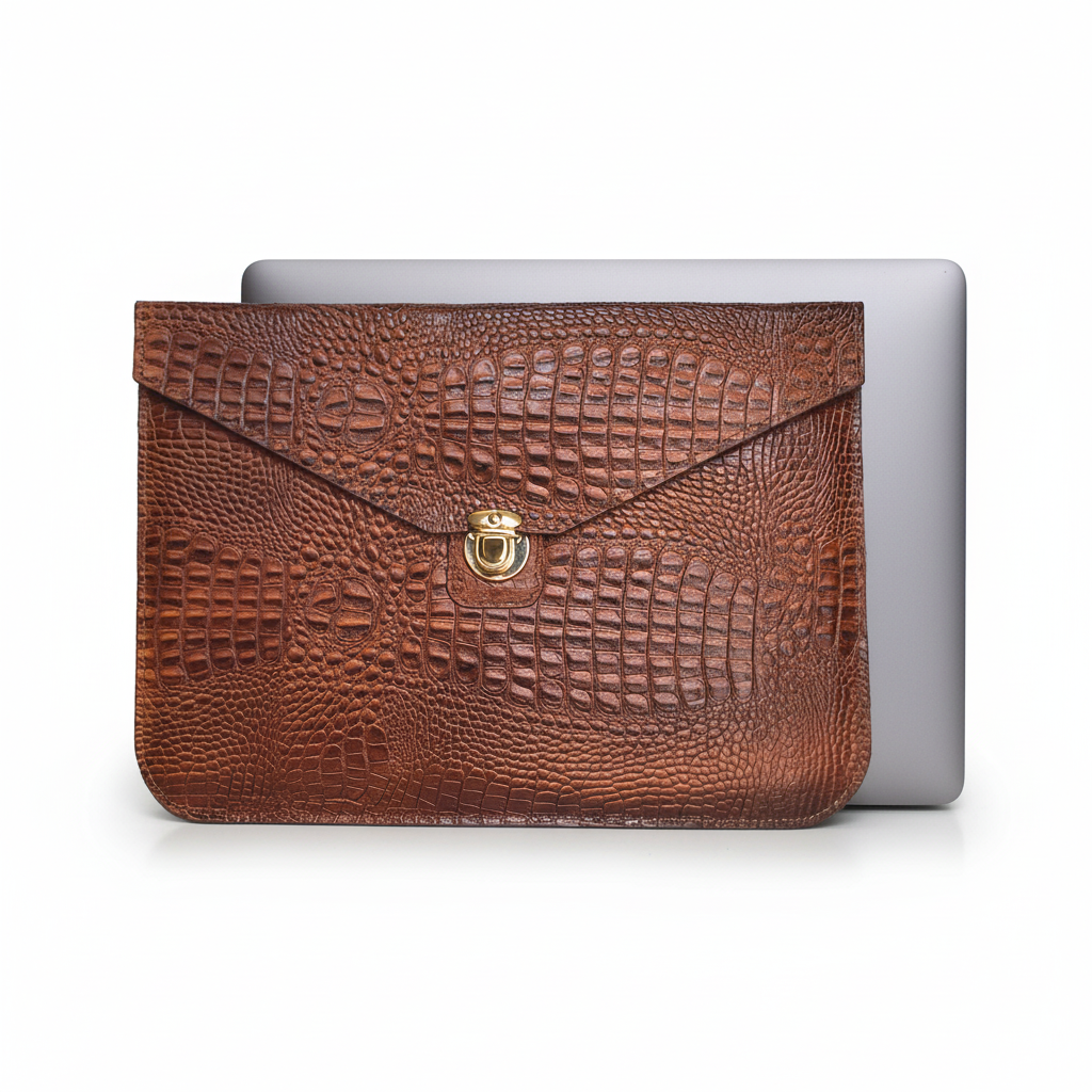 بدنه این کاور از چرم طبیعی گاوی مرغوب با طرح بچه کروکودیل به رنگ عسلی ساخته شده که علاوه بر زیبایی چشم‌نواز، دوام و مقاومت بالایی در برابر سایش، خط‌وخش و ضربه دارد. قفل فلزی مستحکم به‌ کار رفته در طراحی کاور، امنیت لپ‌تاپ شما را تضمین کرده و حس کیفیت و استحکام را به‌ خوبی منتقل می‌کند.